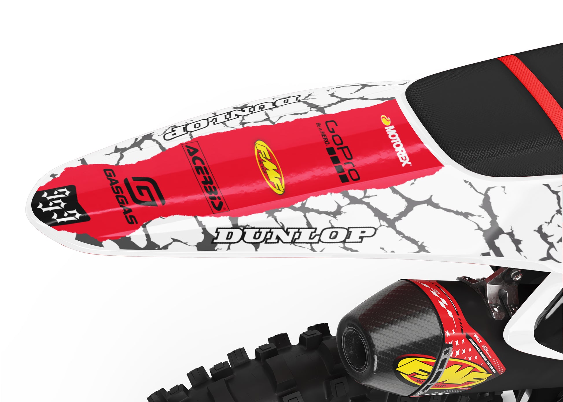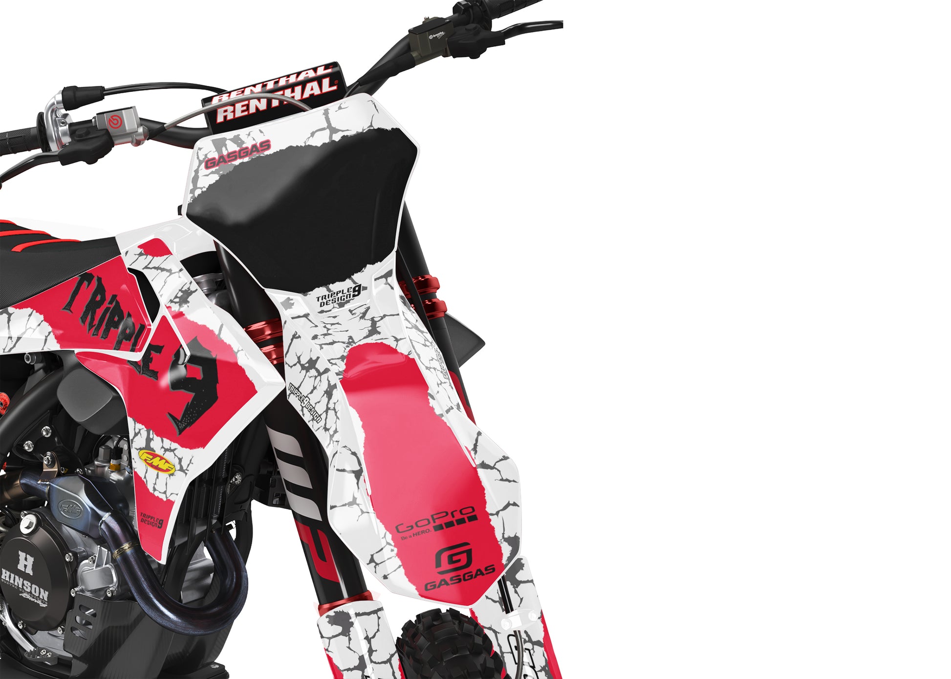 -Pełen zestaw personalizowanych oklein obejmuje naklejki na - osłony chłodnicy, Airbox, błotniki przód oraz tył, pola numerowe boczne oraz przednie, osłony lag oraz Wahacz (Skład może się różnić w zależności od modelu motocykla).
