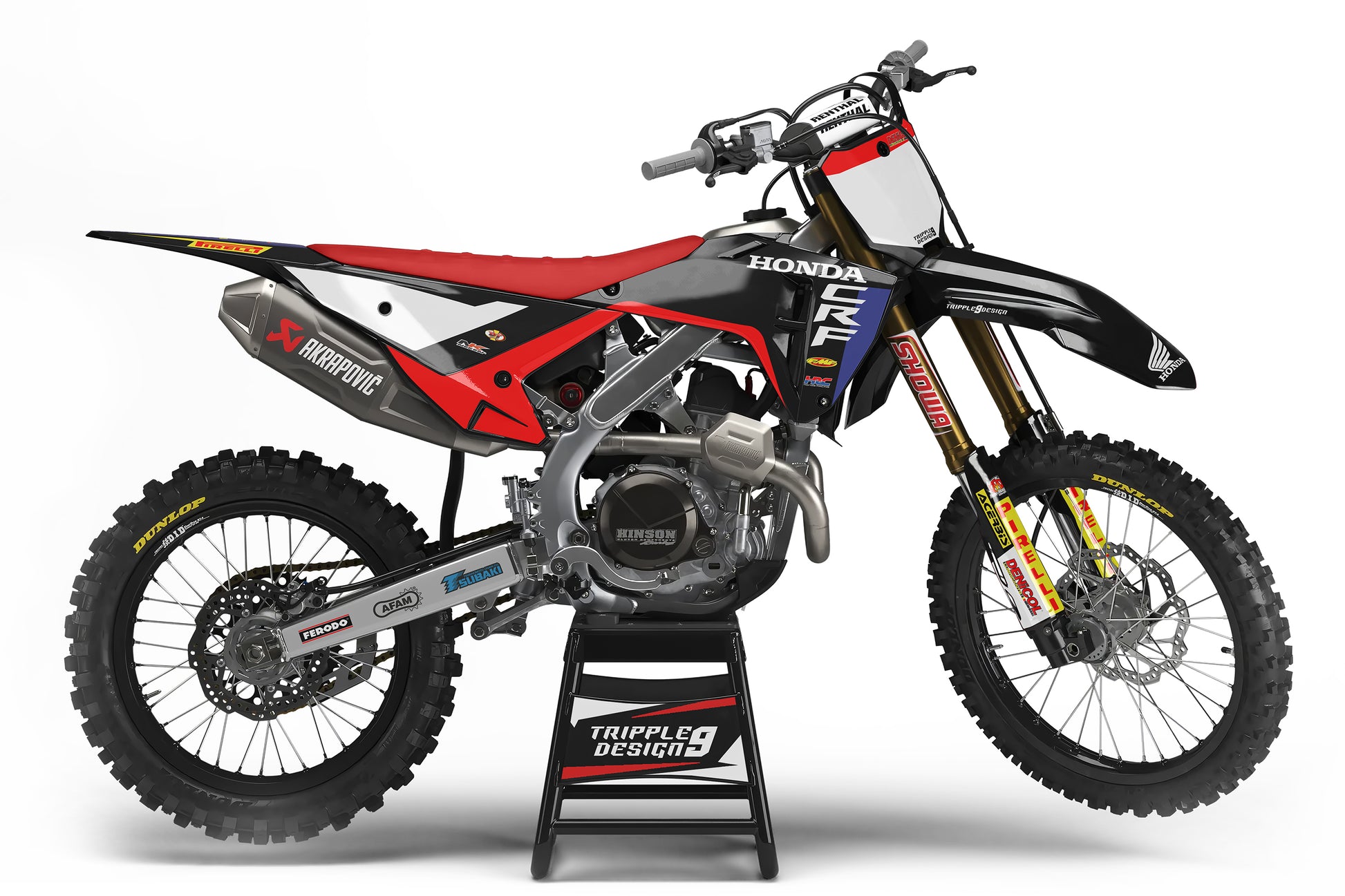 -Pełen zestaw personalizowanych oklein obejmuje naklejki na - osłony chłodnicy, Airbox, błotniki przód oraz tył, pola numerowe boczne oraz przednie, osłony lag oraz Wahacz (Skład może się różnić w zależności od modelu motocykla).