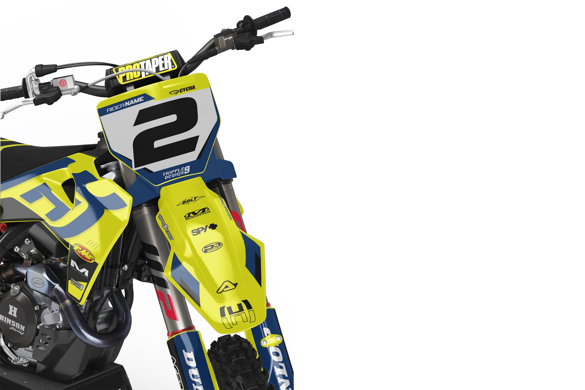 -Pełen zestaw personalizowanych oklein obejmuje naklejki na - osłony chłodnicy, Airbox, błotniki przód oraz tył, pola numerowe boczne oraz przednie, osłony lag oraz Wahacz (Skład może się różnić w zależności od modelu motocykla).