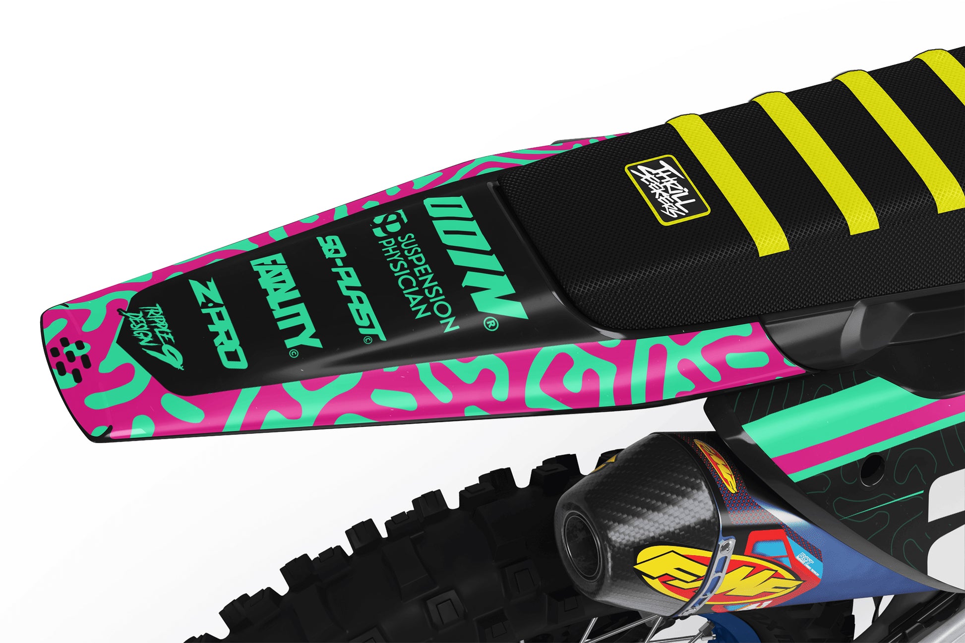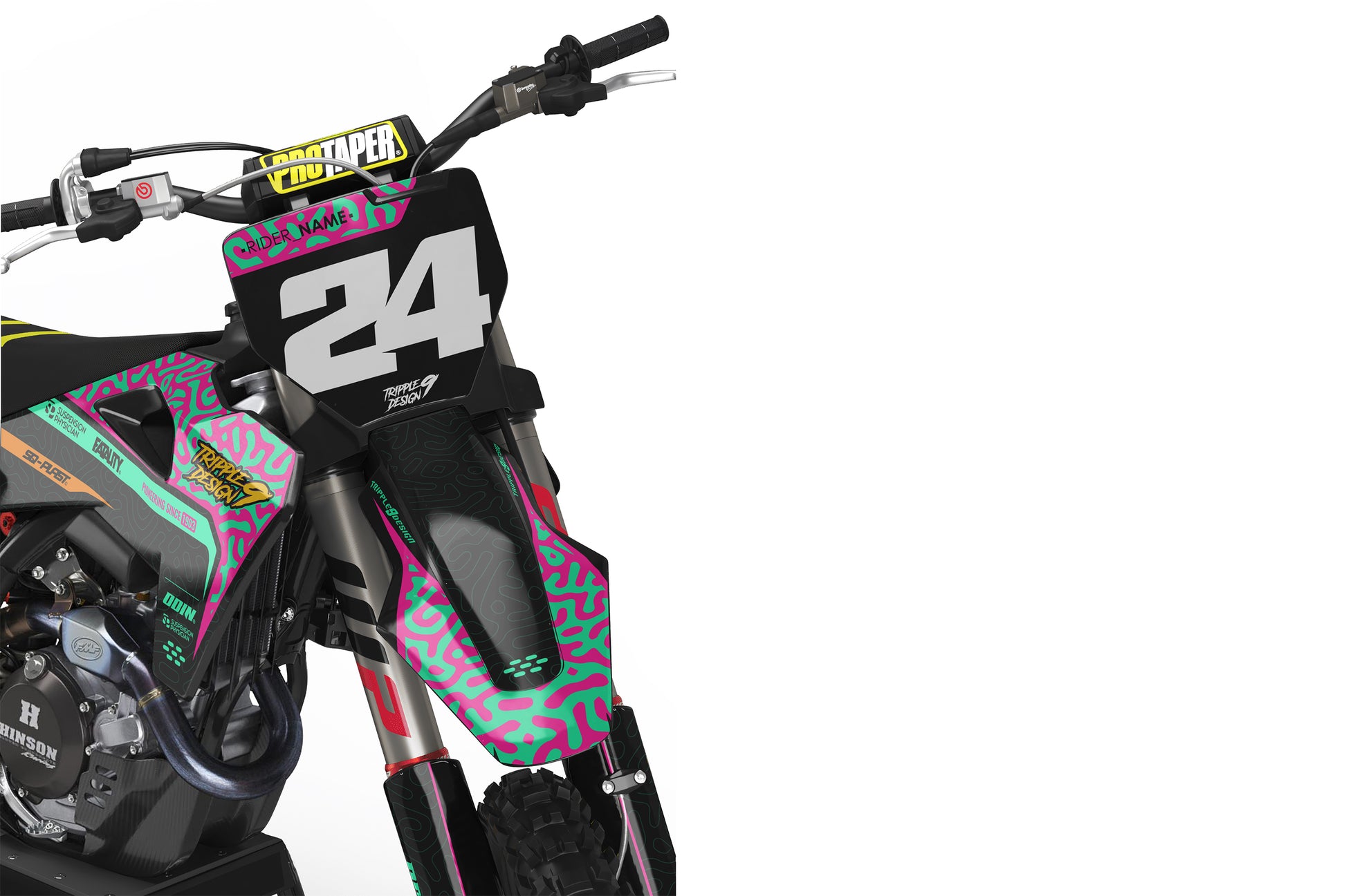 -Pełen zestaw personalizowanych oklein obejmuje naklejki na - osłony chłodnicy, Airbox, błotniki przód oraz tył, pola numerowe boczne oraz przednie, osłony lag oraz Wahacz (Skład może się różnić w zależności od modelu motocykla).