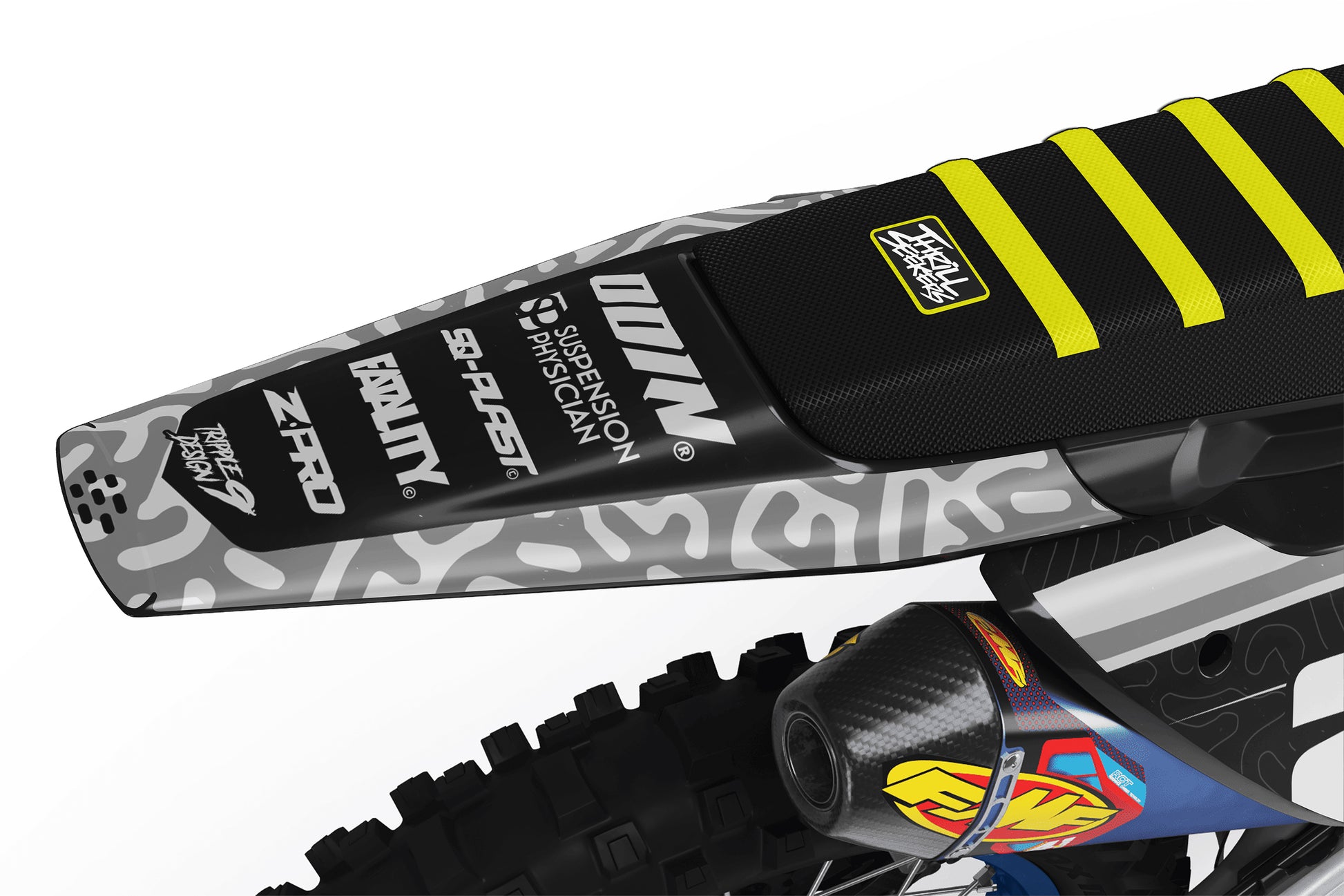 -Pełen zestaw personalizowanych oklein obejmuje naklejki na - osłony chłodnicy, Airbox, błotniki przód oraz tył, pola numerowe boczne oraz przednie, osłony lag oraz Wahacz (Skład może się różnić w zależności od modelu motocykla).