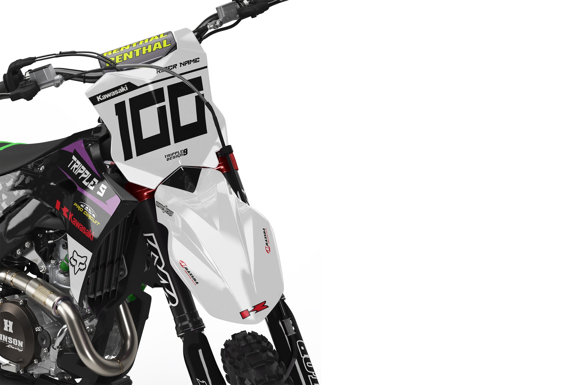 -Pełen zestaw personalizowanych oklein obejmuje naklejki na - osłony chłodnicy, Airbox, błotniki przód oraz tył, pola numerowe boczne oraz przednie, osłony lag oraz Wahacz (Skład może się różnić w zależności od modelu motocykla).