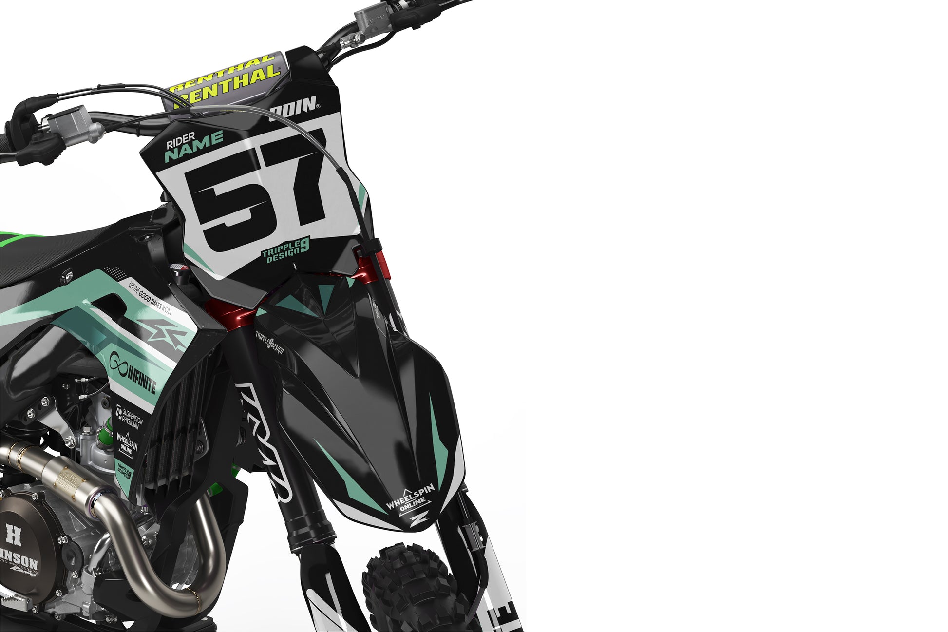 -Pełen zestaw personalizowanych oklein obejmuje naklejki na - osłony chłodnicy, Airbox, błotniki przód oraz tył, pola numerowe boczne oraz przednie, osłony lag oraz Wahacz (Skład może się różnić w zależności od modelu motocykla).