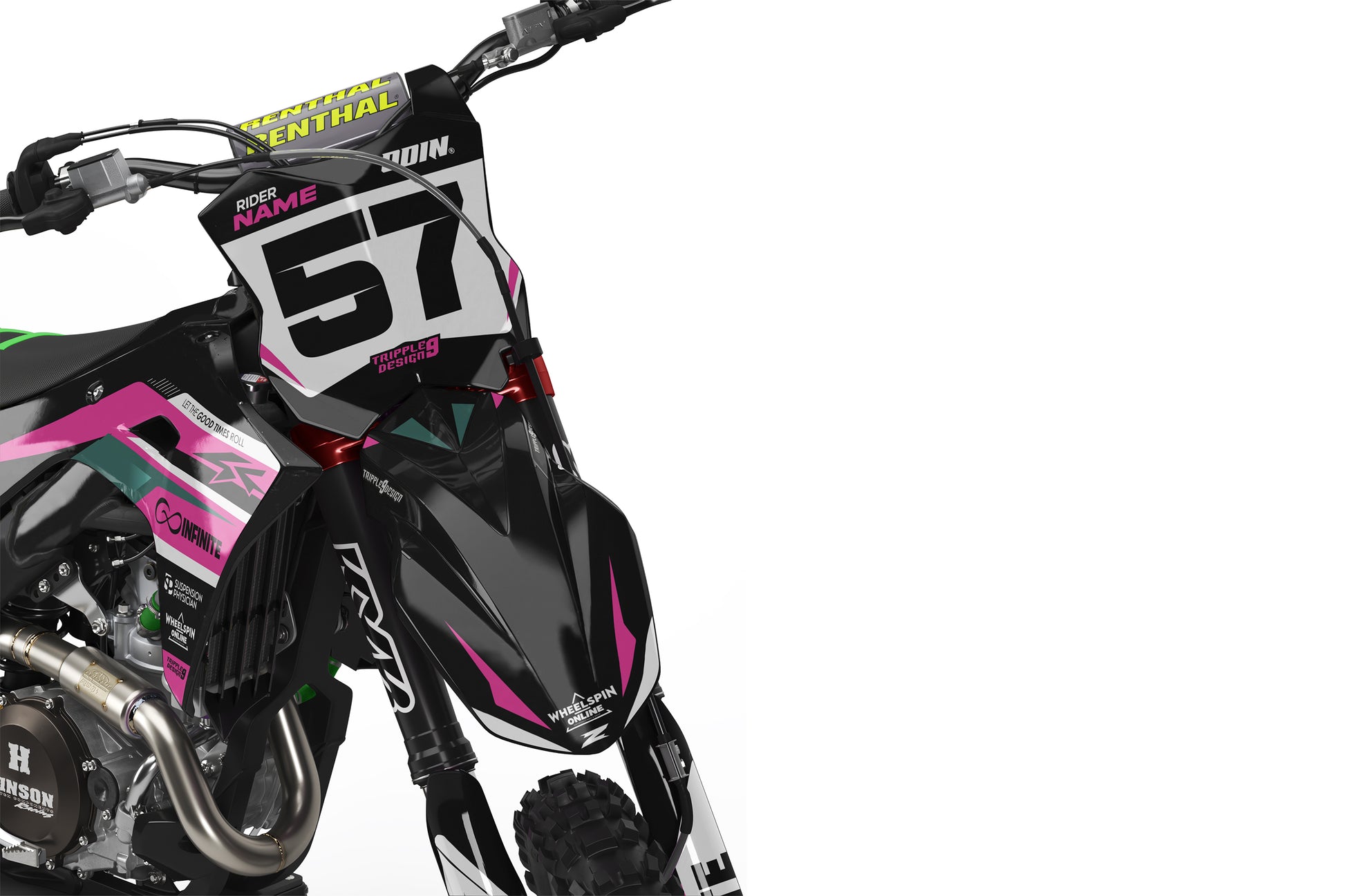 -Pełen zestaw personalizowanych oklein obejmuje naklejki na - osłony chłodnicy, Airbox, błotniki przód oraz tył, pola numerowe boczne oraz przednie, osłony lag oraz Wahacz (Skład może się różnić w zależności od modelu motocykla).