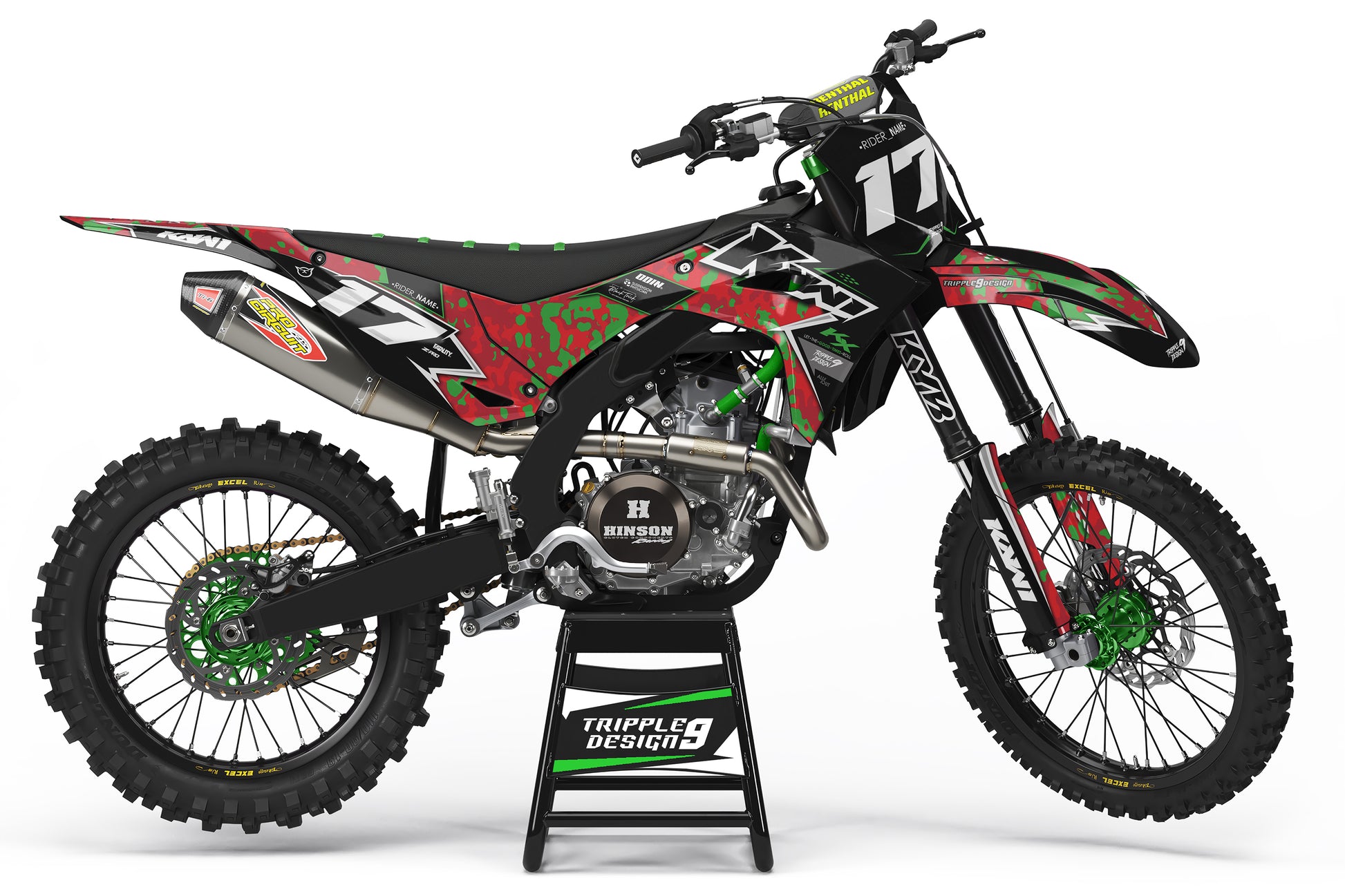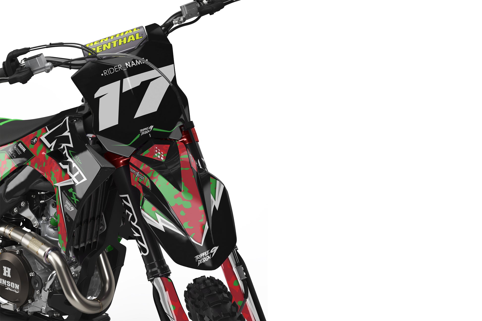 -Pełen zestaw personalizowanych oklein obejmuje naklejki na - osłony chłodnicy, Airbox, błotniki przód oraz tył, pola numerowe boczne oraz przednie, osłony lag oraz Wahacz (Skład może się różnić w zależności od modelu motocykla).