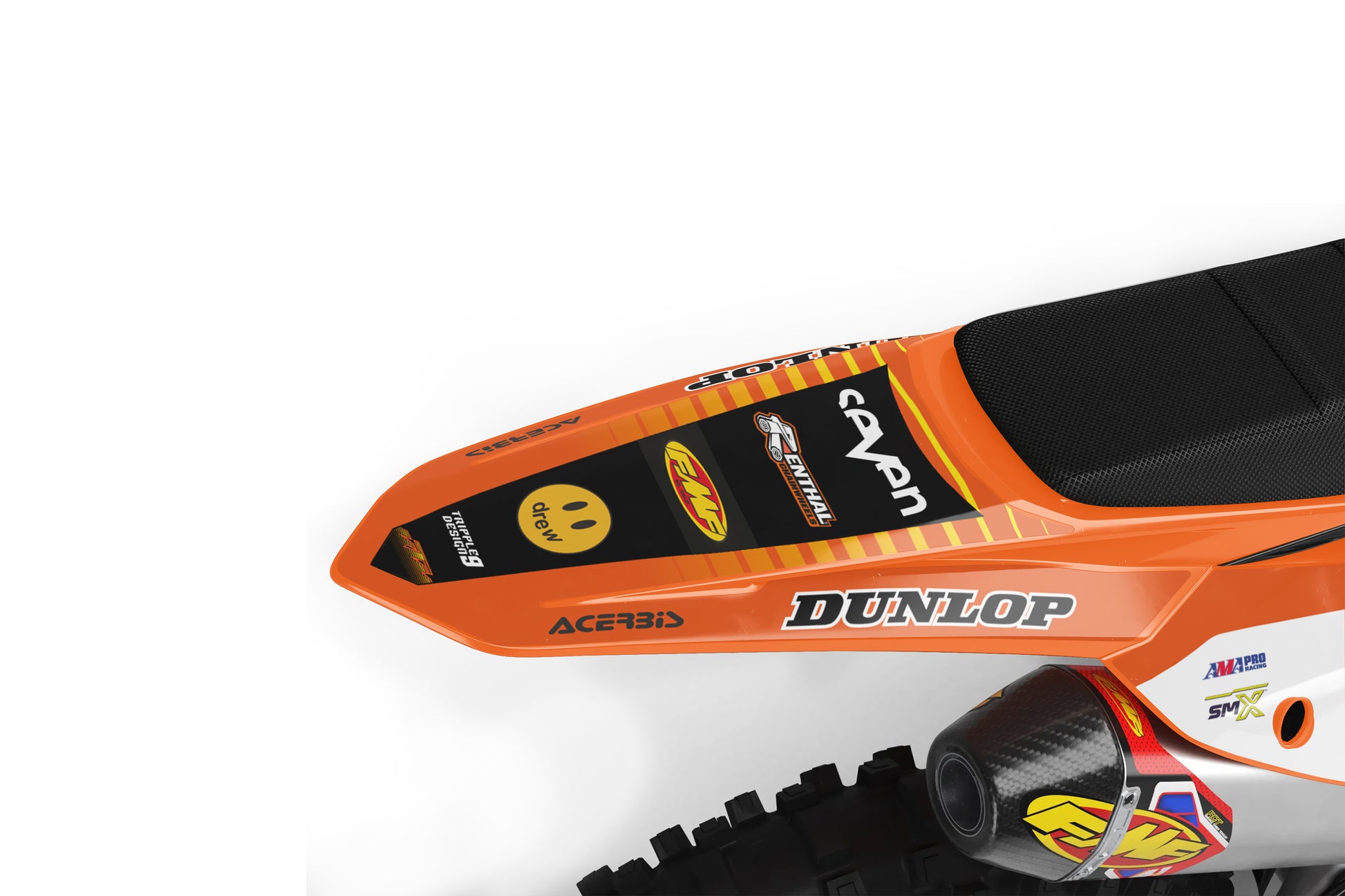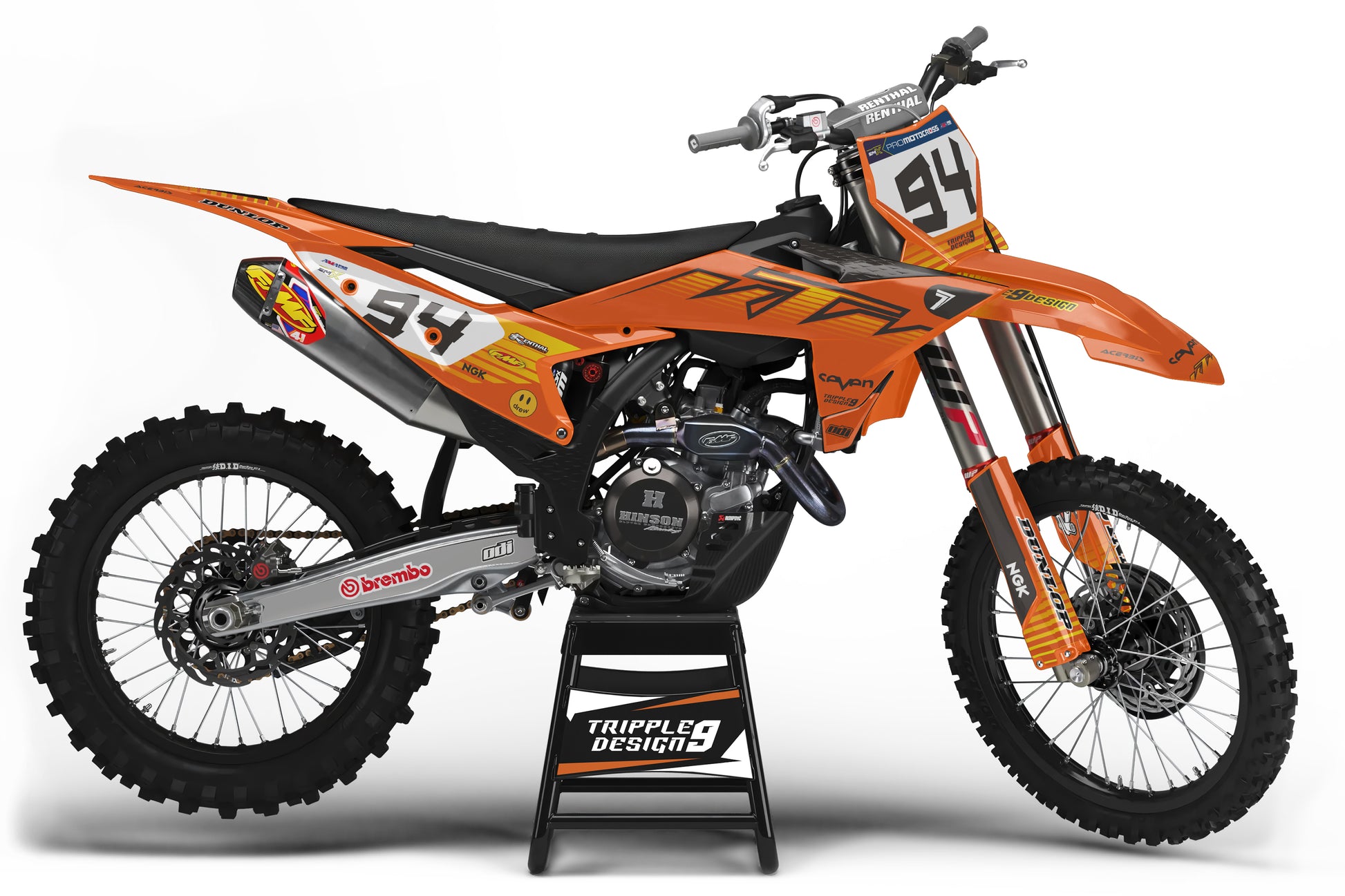 -Pełen zestaw personalizowanych oklein obejmuje naklejki na - osłony chłodnicy, Airbox, błotniki przód oraz tył, pola numerowe boczne oraz przednie, osłony lag oraz Wahacz (Skład może się różnić w zależności od modelu motocykla).