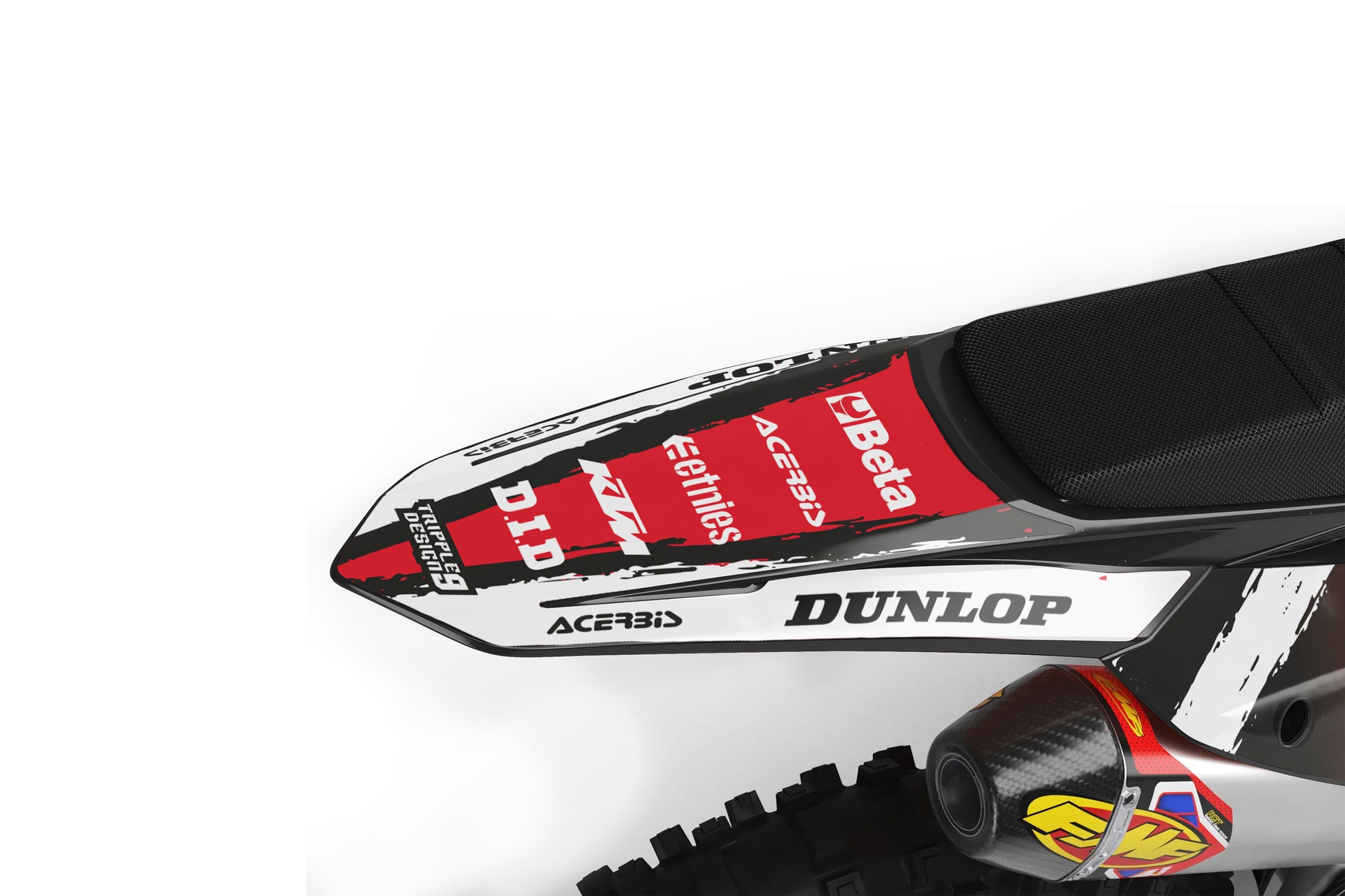 -Pełen zestaw personalizowanych oklein obejmuje naklejki na - osłony chłodnicy, Airbox, błotniki przód oraz tył, pola numerowe boczne oraz przednie, osłony lag oraz Wahacz (Skład może się różnić w zależności od modelu motocykla).
