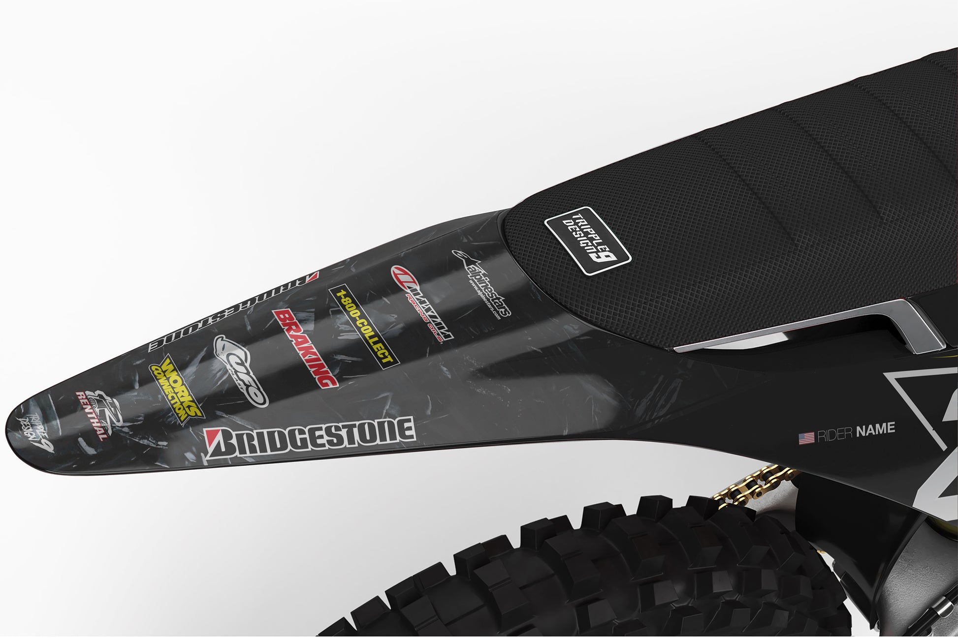 -Pełen zestaw personalizowanych oklein obejmuje naklejki na - osłony chłodnicy, Airbox, błotniki przód oraz tył, pola numerowe boczne oraz przednie, osłony lag oraz Wahacz (Skład może się różnić w zależności od modelu motocykla).
