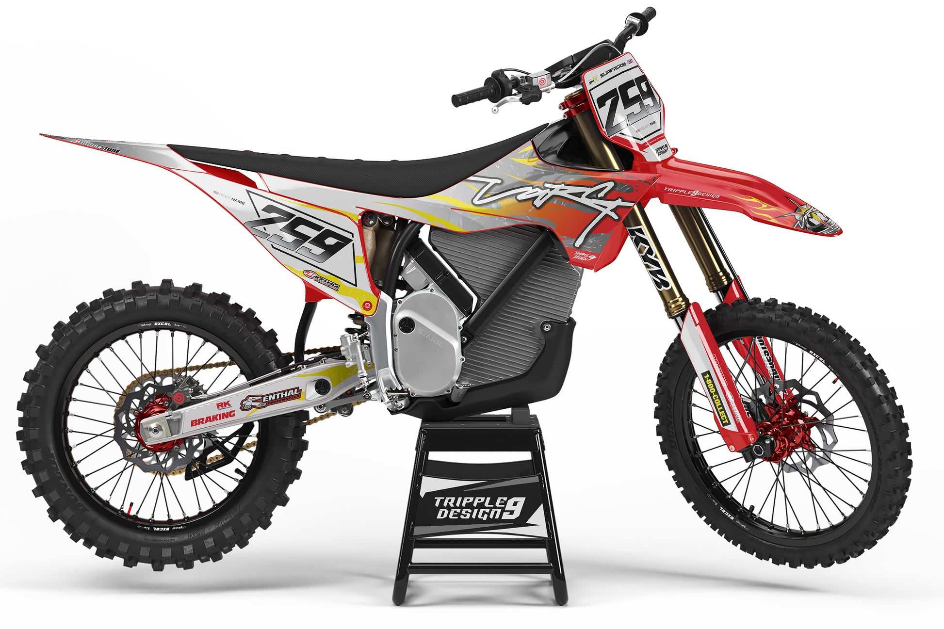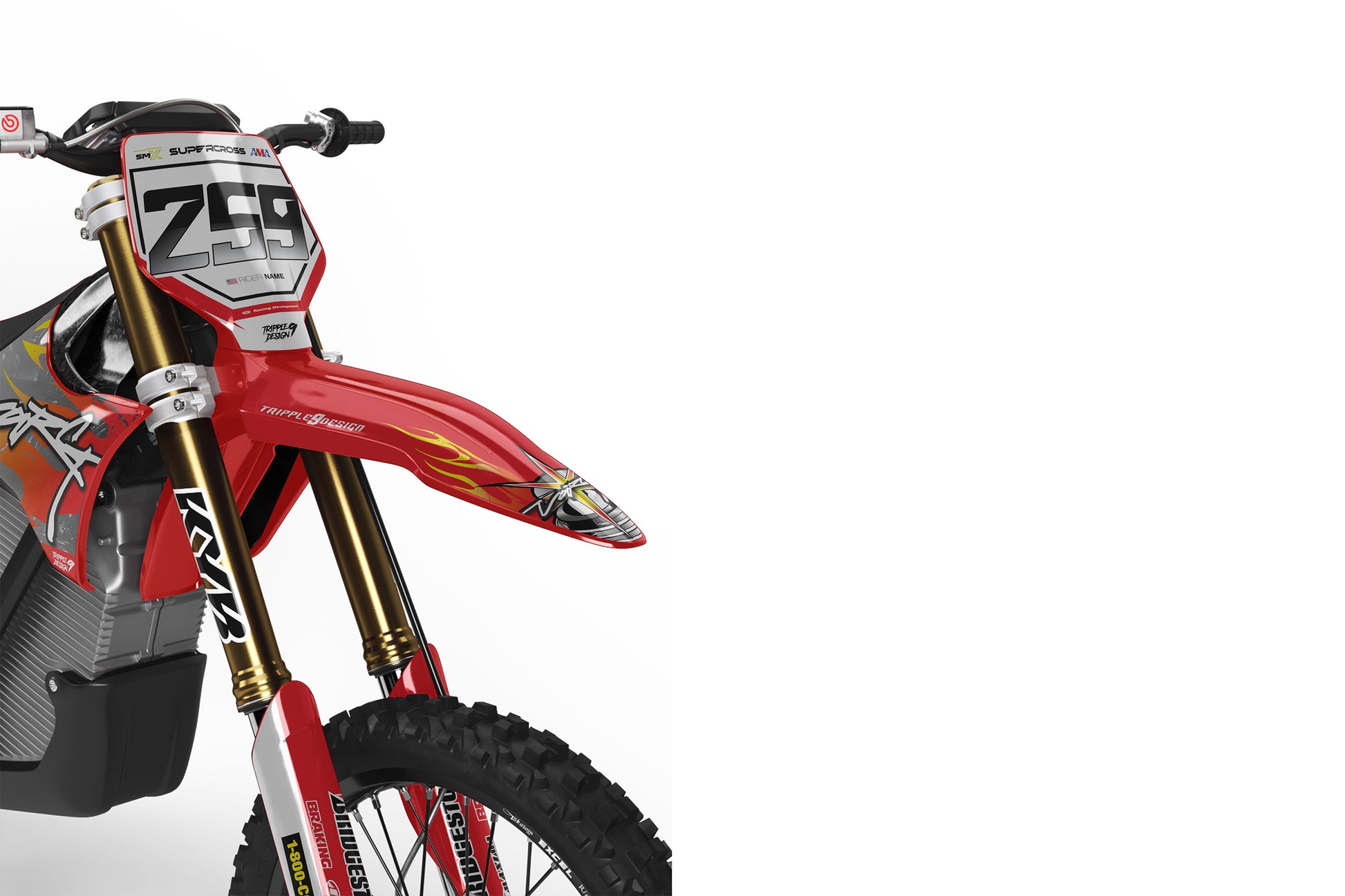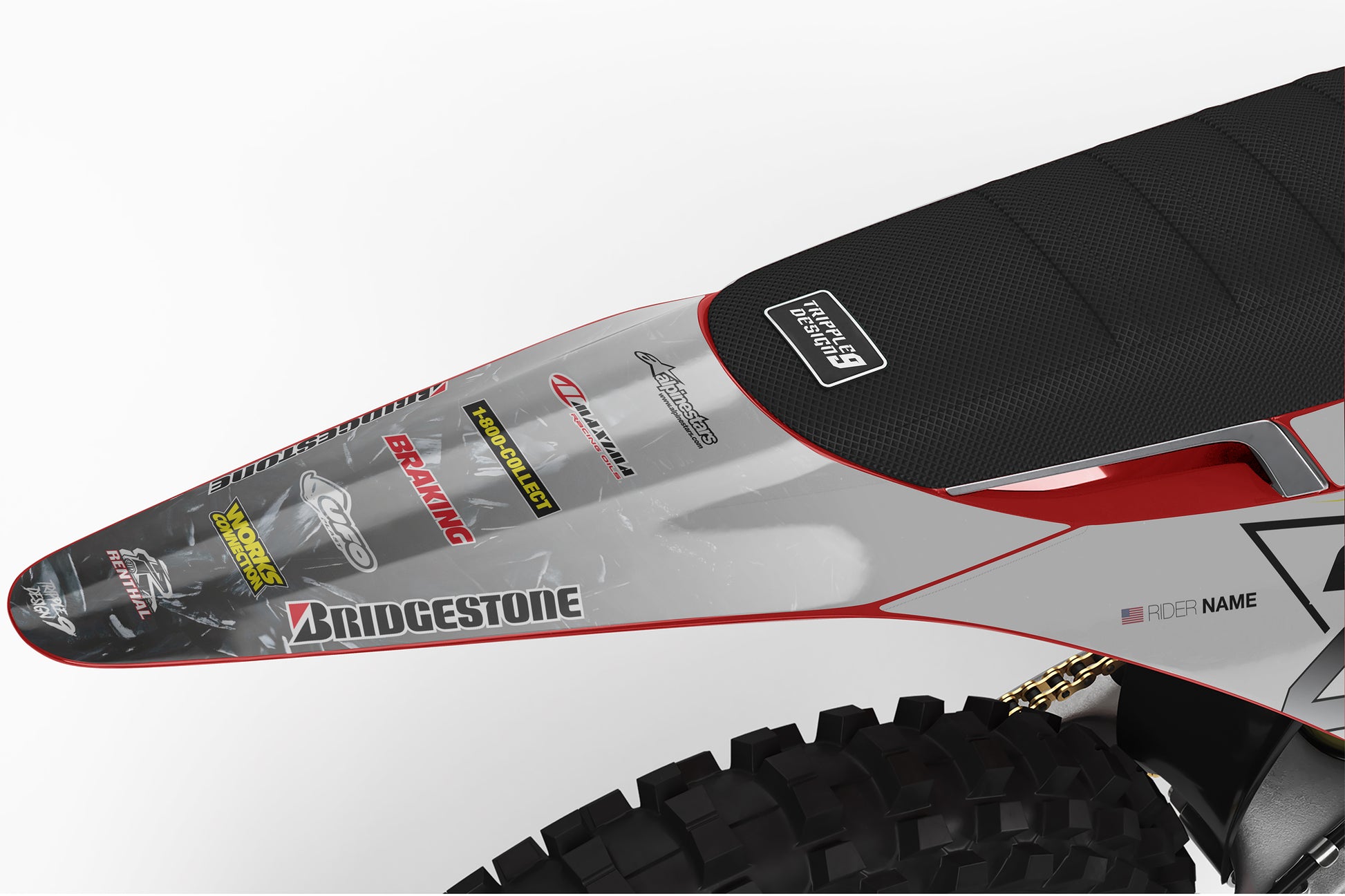 -Pełen zestaw personalizowanych oklein obejmuje naklejki na - osłony chłodnicy, Airbox, błotniki przód oraz tył, pola numerowe boczne oraz przednie, osłony lag oraz Wahacz (Skład może się różnić w zależności od modelu motocykla).