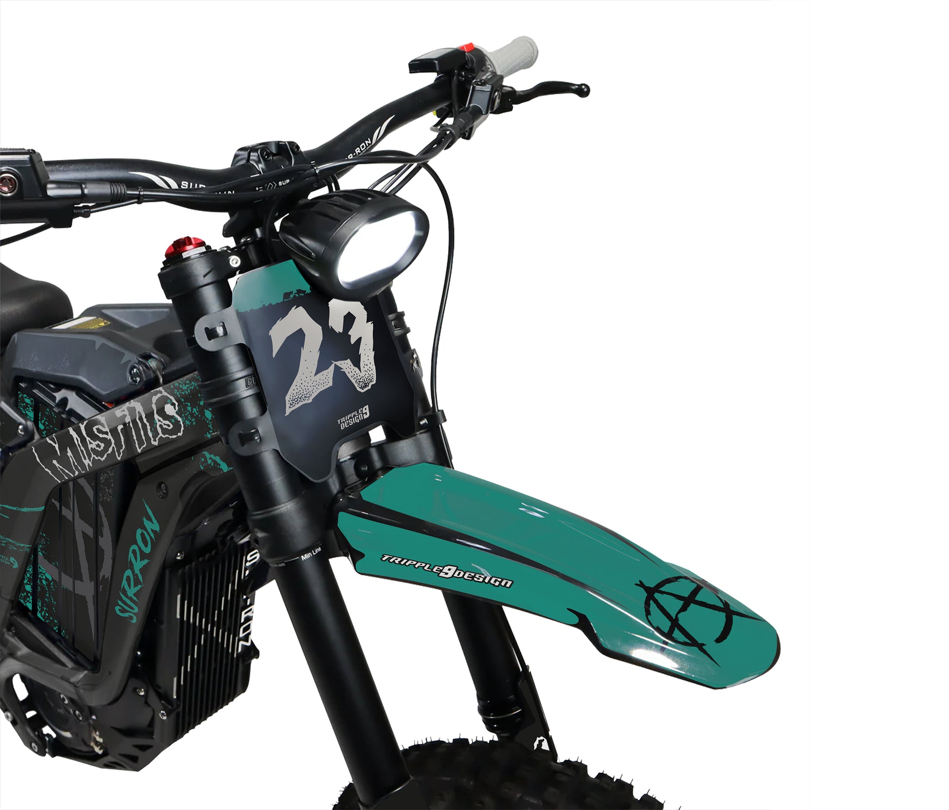 -Pełen zestaw personalizowanych oklein obejmuje naklejki na - Ramę, Baterię, błotniki przód oraz tył, pole numerowe boczne przednie, osłony lag oraz Wahacz (Skład może się różnić w zależności od modelu ).
