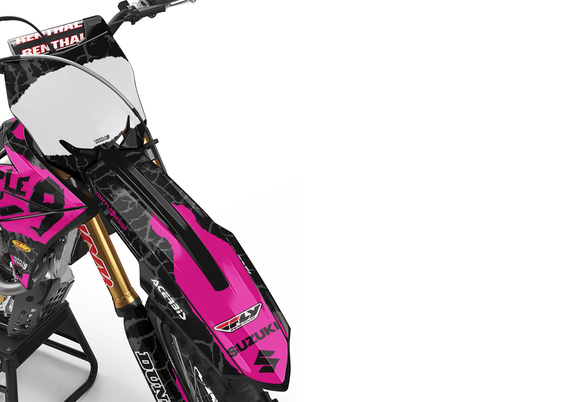 -Pełen zestaw personalizowanych oklein obejmuje naklejki na - osłony chłodnicy, Airbox, błotniki przód oraz tył, pola numerowe boczne oraz przednie, osłony lag oraz Wahacz (Skład może się różnić w zależności od modelu motocykla).