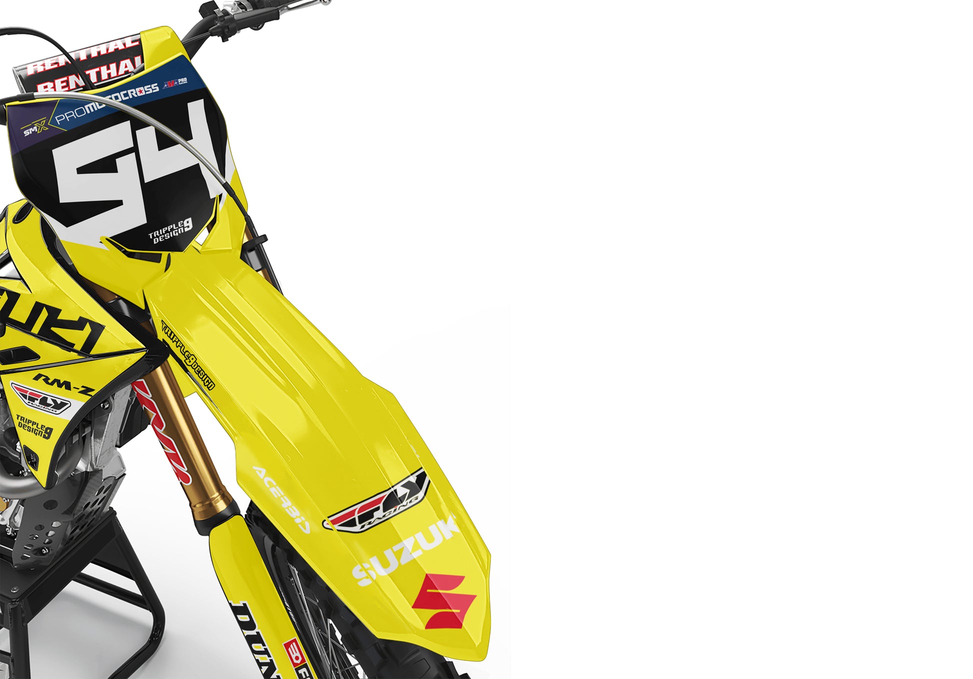 -Pełen zestaw personalizowanych oklein obejmuje naklejki na - osłony chłodnicy, Airbox, błotniki przód oraz tył, pola numerowe boczne oraz przednie, osłony lag oraz Wahacz (Skład może się różnić w zależności od modelu motocykla).