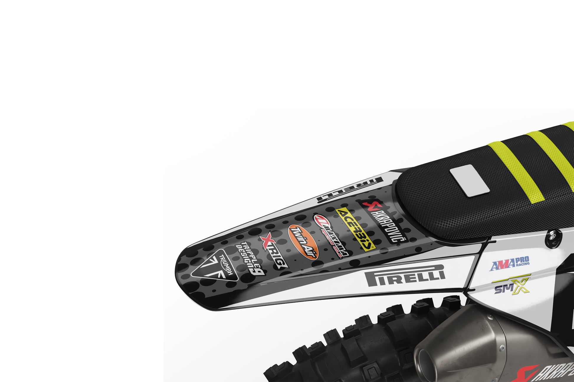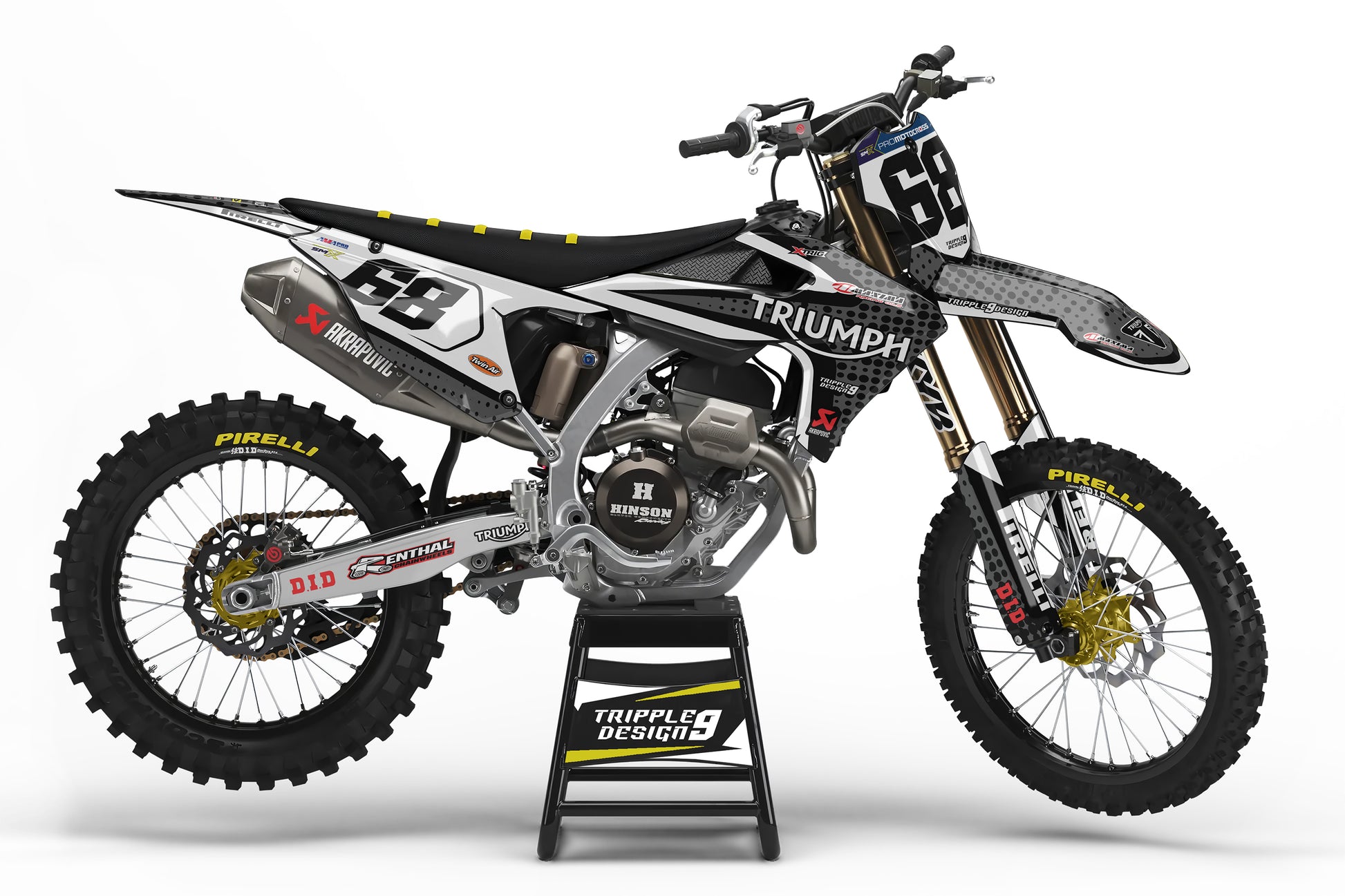 -Pełen zestaw personalizowanych oklein obejmuje naklejki na - osłony chłodnicy, Airbox, błotniki przód oraz tył, pola numerowe boczne oraz przednie, osłony lag oraz Wahacz (Skład może się różnić w zależności od modelu motocykla).
